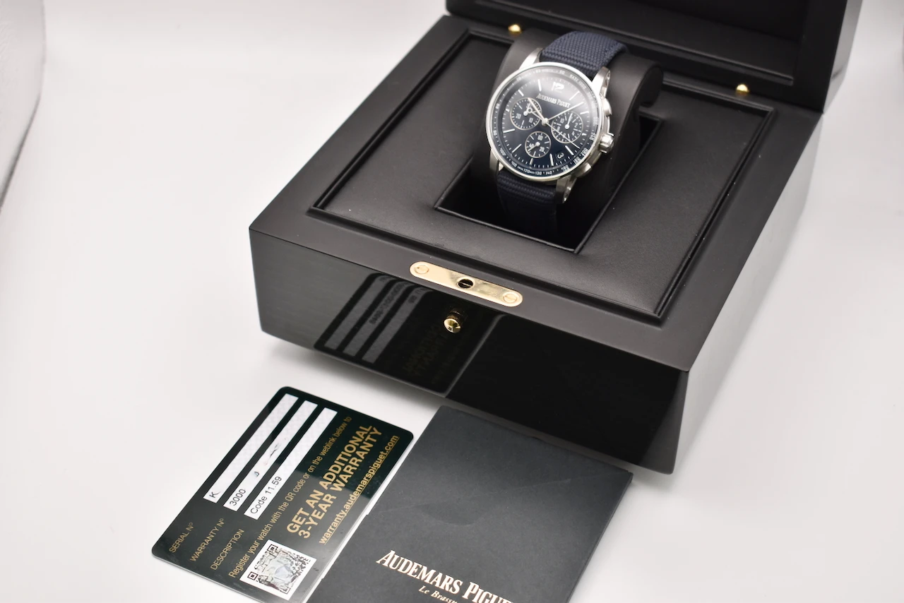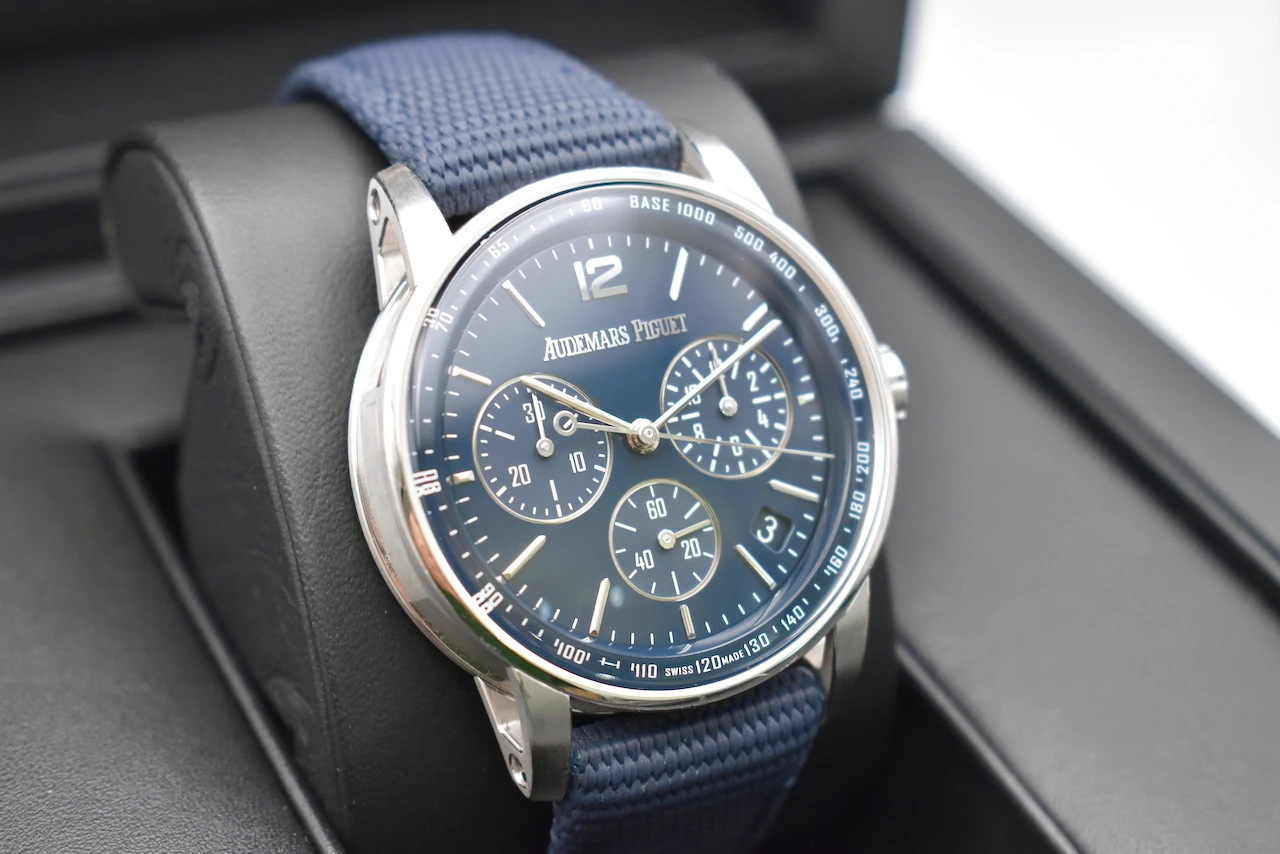 Discover the Audemars Piguet Code 11.59 White Gold Chronograph (Ref. 26393BC.OO.A321CR.01) — a masterpiece of Swiss watchmaking that blends tradition and innovation. Featuring a 41mm 18k white gold case, blue lacquered dial, and automatic chronograph movement, this exceptional timepiece embodies Audemars Piguet’s signature elegance. Available now at Tempus Lord, a trusted luxury watch retailer based in Hatton Garden, London, specializing in Audemars Piguet and fine Swiss watches.