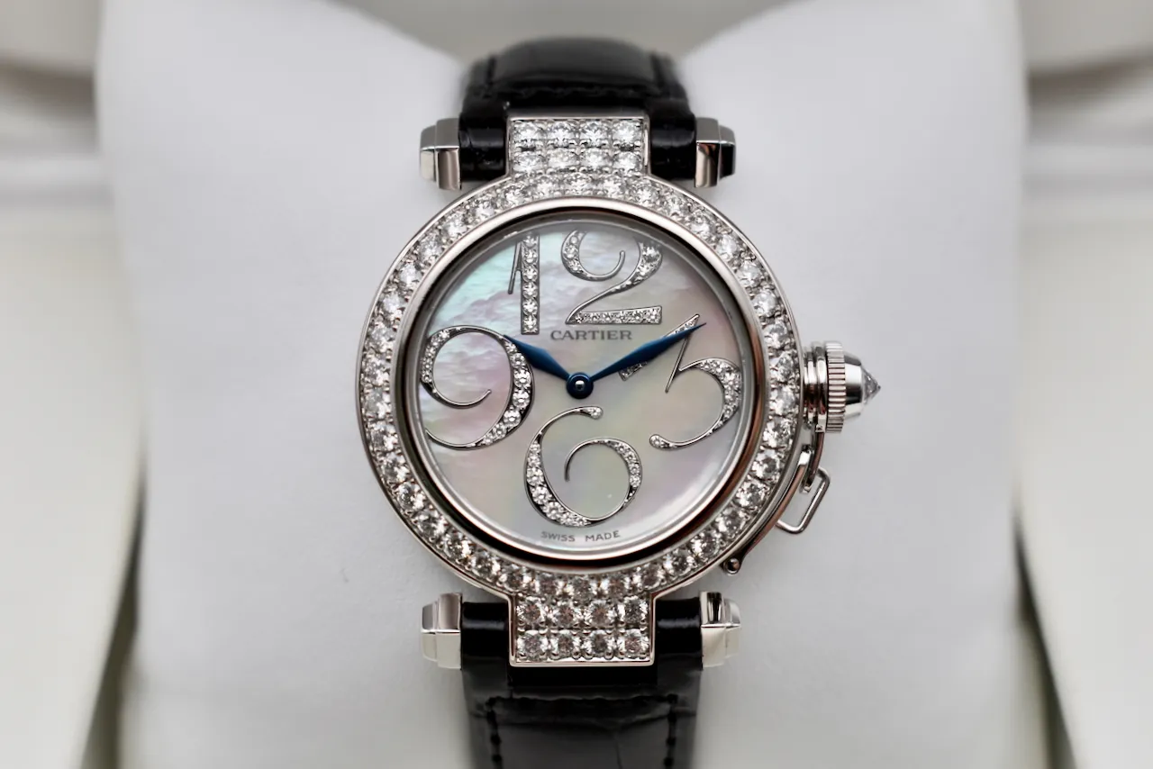 Cartier Pasha White Gold Diamond Set Watch WJ123221 | 2008 Box & Papera