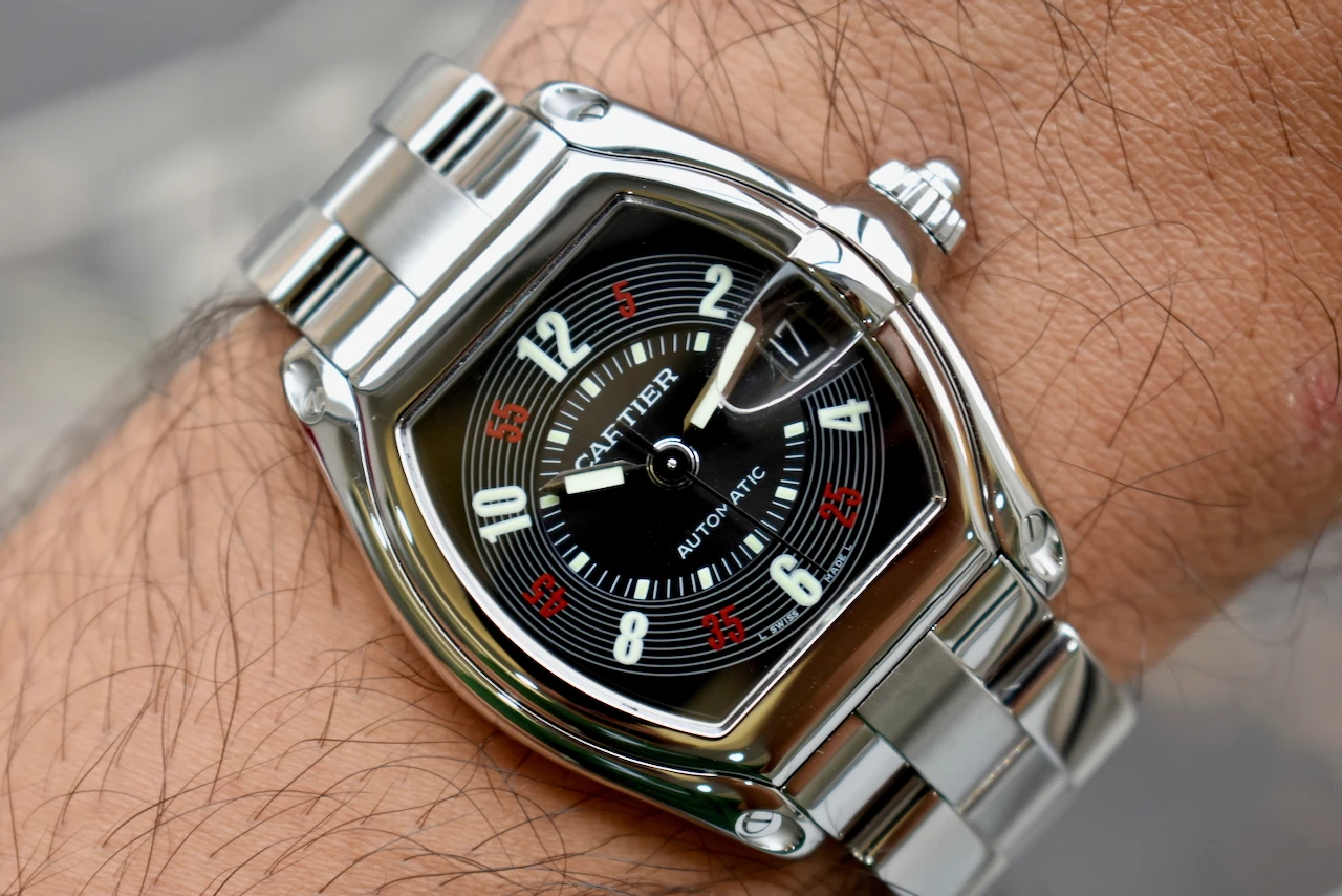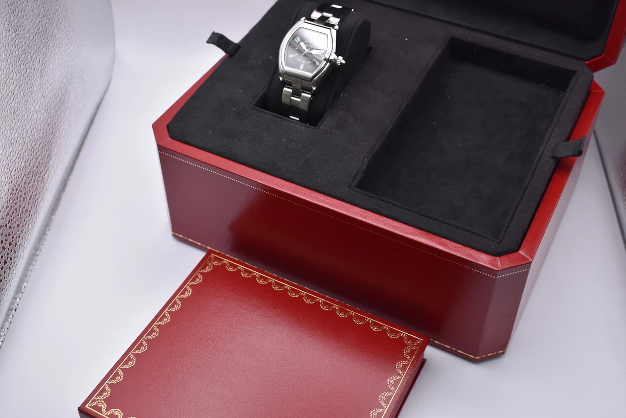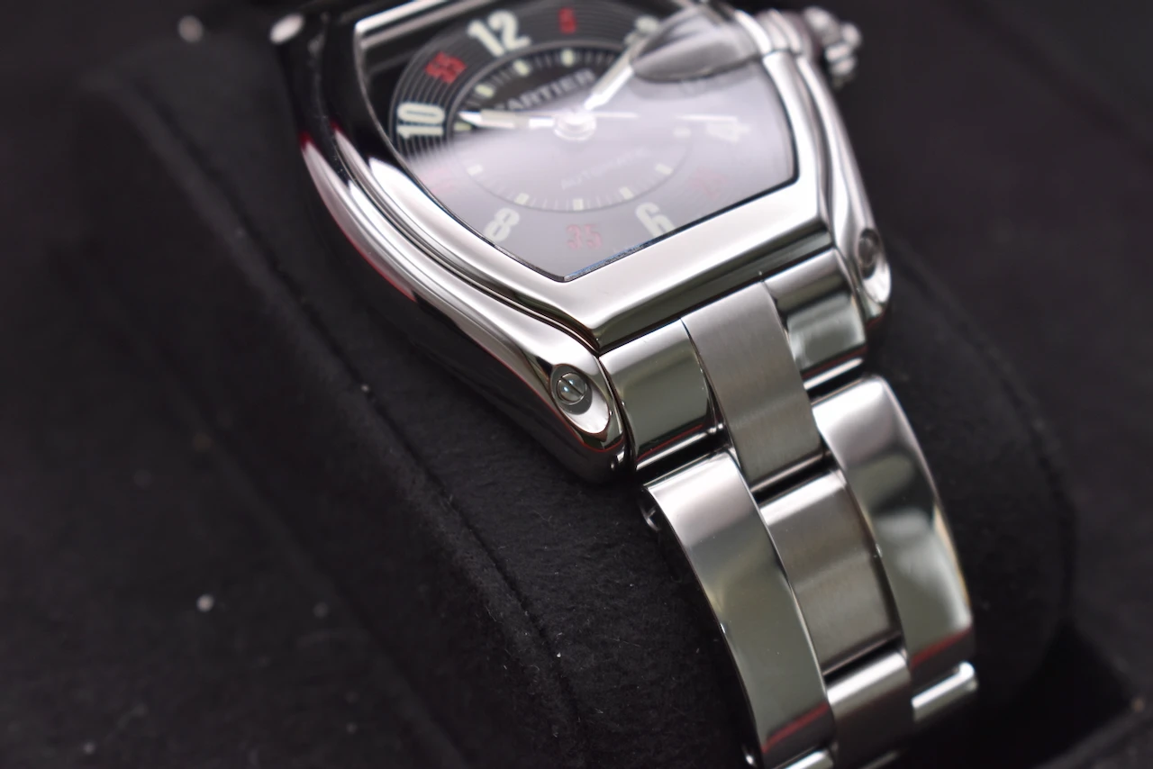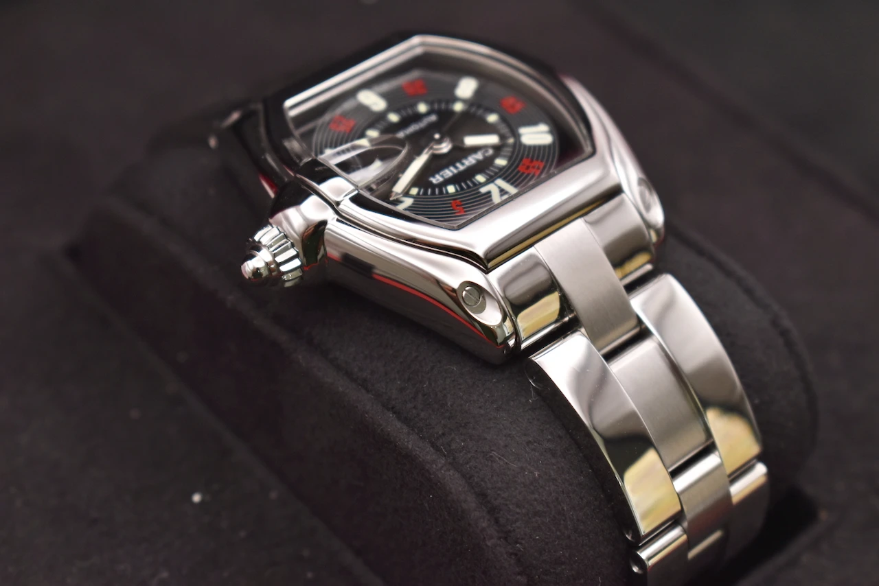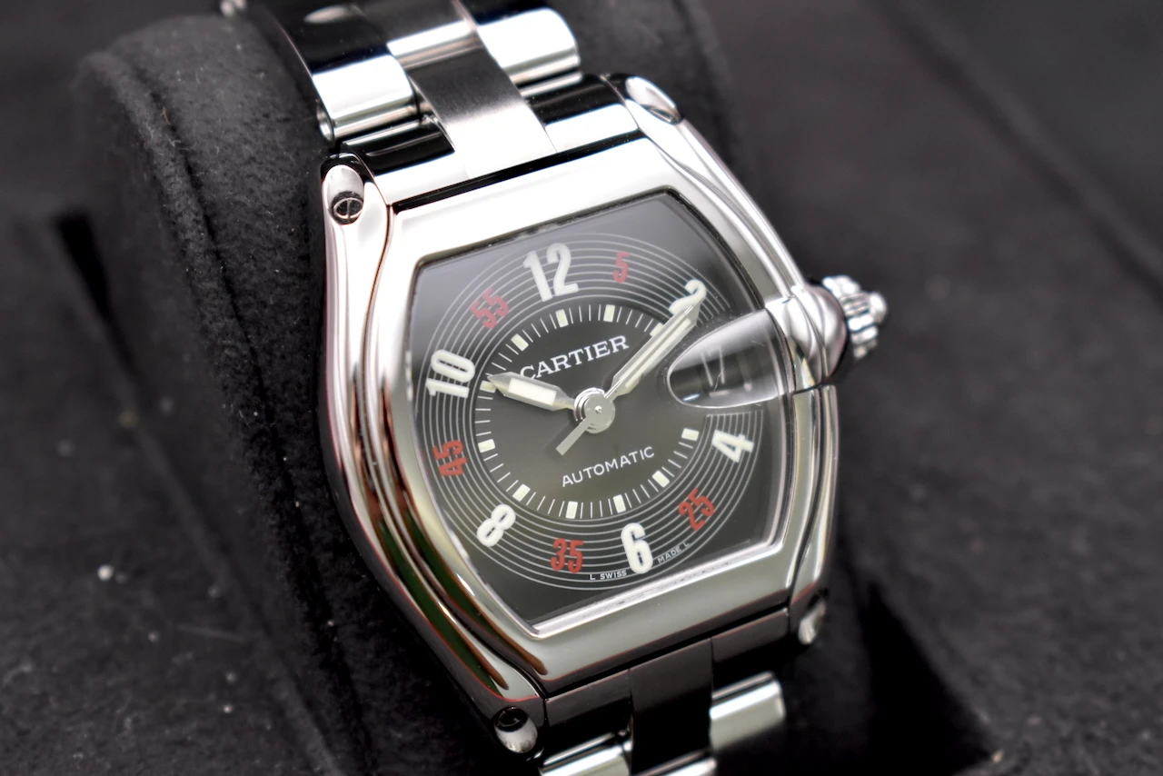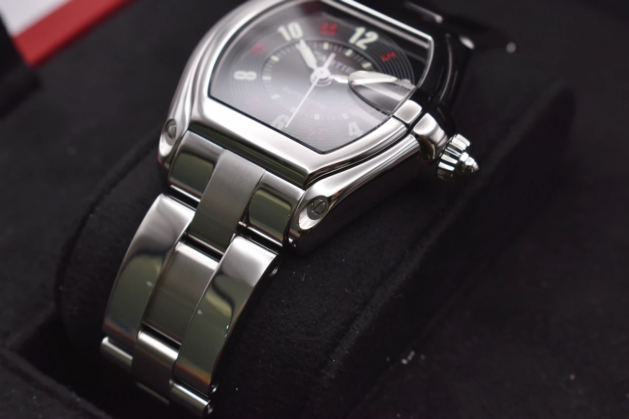 Experience the perfect blend of bold design and timeless elegance with the Cartier Roadster Vegas Dial Automatic Stainless Steel Watch (Ref. 2510). This striking edition of the iconic Roadster line features a distinctive “Vegas” dial, showcasing vibrant accent colours inspired by classic casino motifs—making it a standout piece for collectors and enthusiasts alike.Crafted from premium stainless steel, the 38mm tonneau-shaped case carries the unmistakable Roadster profile, complete with the signature screw-down crown and sleek, aerodynamic contours. The polished steel bracelet offers comfort, durability, and refined style, while the curved sapphire crystal enhances the watch’s unique presence on the wrist.Powered by a reliable Swiss automatic movement, the Roadster Vegas Dial delivers precision timekeeping and smooth performance, embodying Cartier’s commitment to horological excellence. Its bold dial layout, luminous hands, and date magnifier at 3 o’clock add both character and functionality.This model is ideal for those who appreciate luxury with personality—an expressive timepiece that stands out without sacrificing sophistication.Sold exclusively by Tempus Lord, trusted luxury watch specialists located in Hatton Garden, London’s historic jewellery quarter. Authenticity and quality are guaranteed.