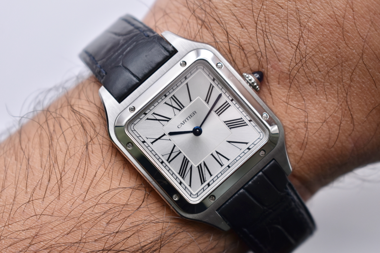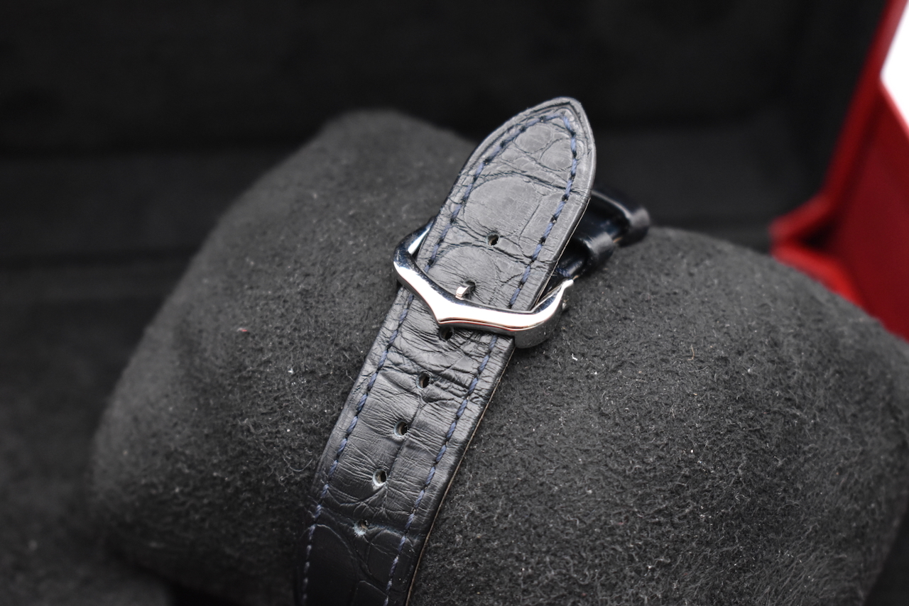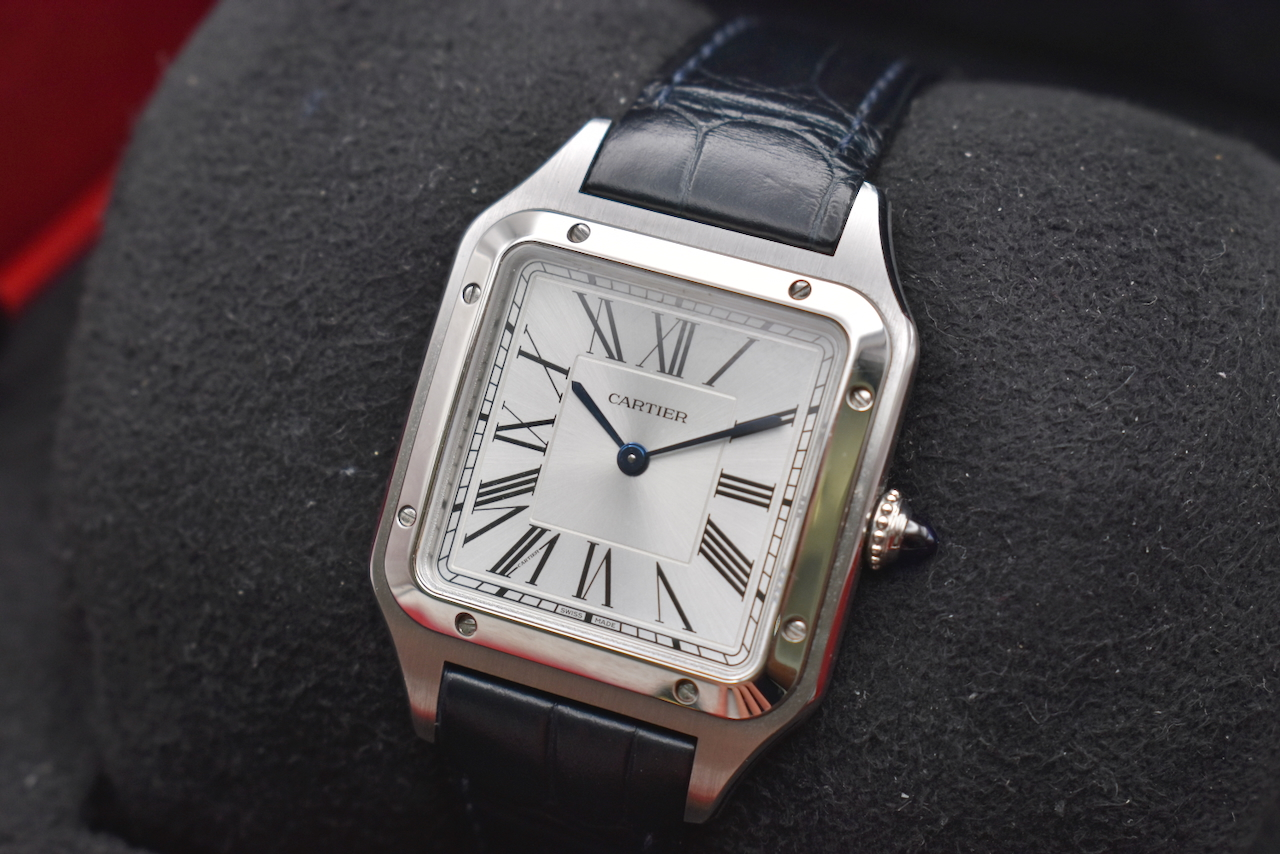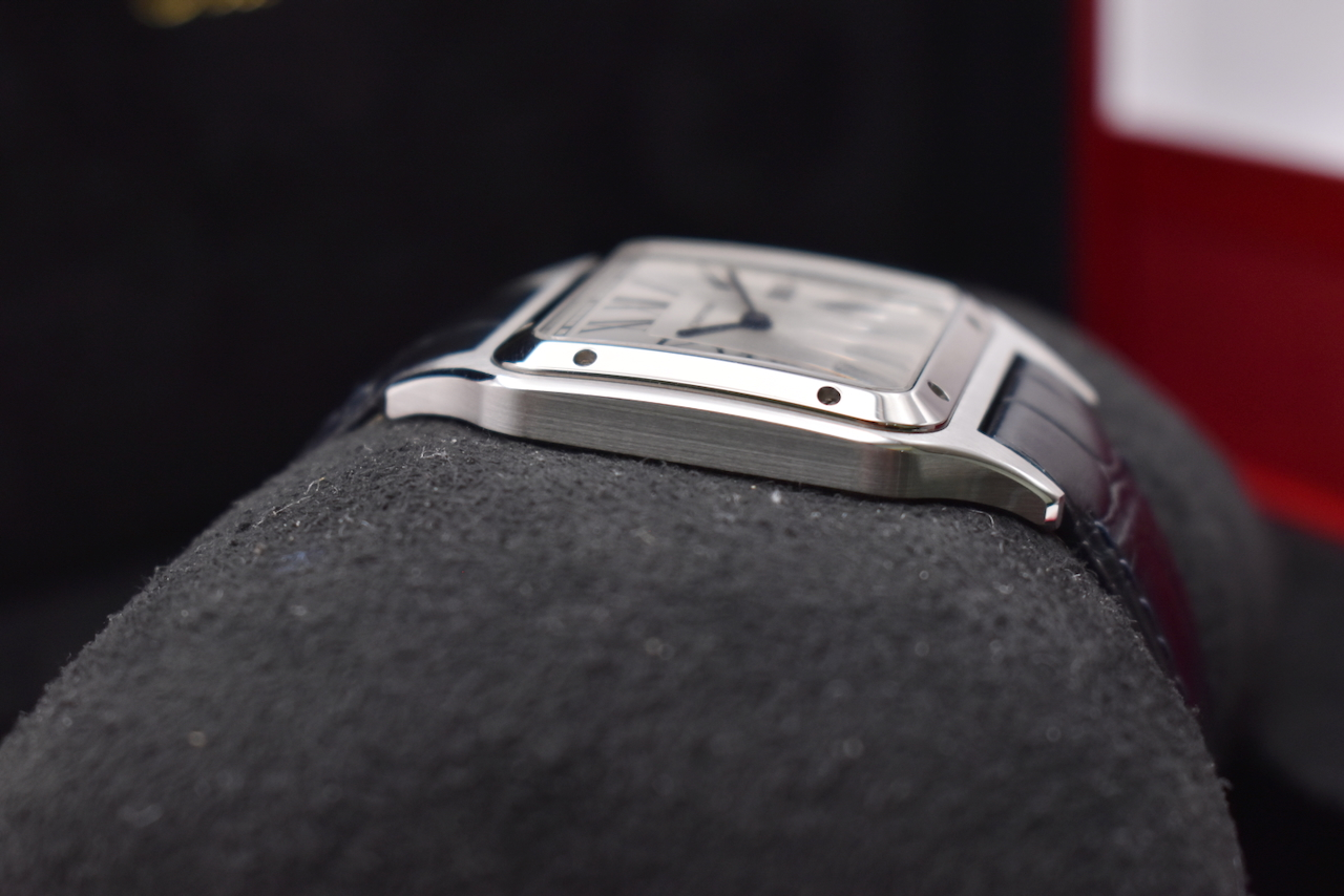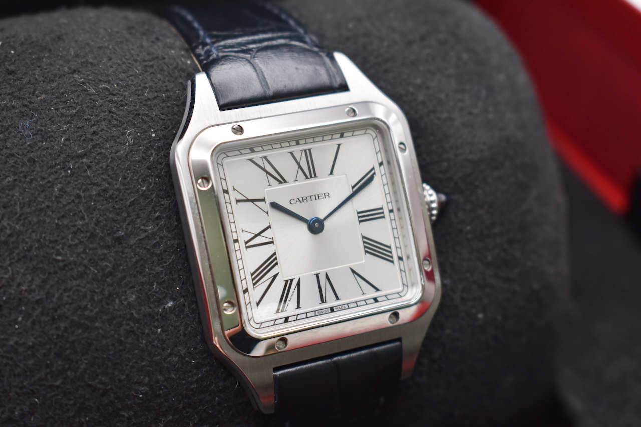 The Cartier Santos Dumont Large Stainless Steel Watch (WSSA0022) is a true icon of refined watchmaking, blending timeless design with unmistakable Cartier elegance. Inspired by aviation heritage and celebrated for its slim profile and square case, the Santos Dumont is the perfect dress watch for those who appreciate understated luxury.This example is presented in excellent condition, having been carefully maintained, with crisp case lines and a beautifully preserved dial featuring Cartier’s signature Roman numerals and blued steel hands. Crafted in stainless steel, the watch sits effortlessly on the wrist, offering both comfort and sophistication for daily wear or special occasions.Importantly, this watch is supplied as a complete set, coming with its original Cartier box and papers, adding confidence, collectability, and long-term value.Offered by Tempus Lord, a trusted independent luxury watch specialist based in Hatton Garden, London, this timepiece has been thoroughly inspected for authenticity and quality. Buying from Tempus Lord ensures peace of mind, expert knowledge, and exceptional service from one of the UK’s most respected watch districts.A timeless classic with enduring appeal, the Cartier Santos Dumont WSSA0022 is an outstanding choice for collectors and first-time Cartier owners alike.