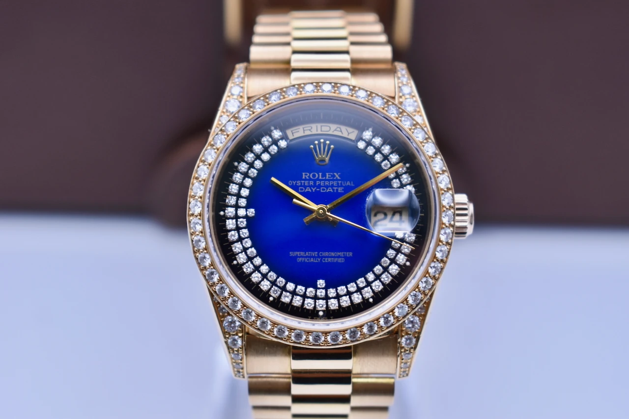 Rolex Day Date 36mm Blue Double String Diamond Dial 18388 | 1999 Box & Papers
