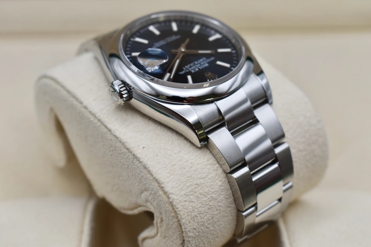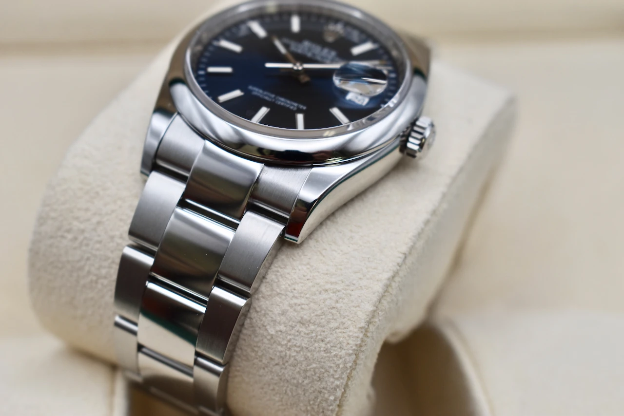 At Tempus Lord, based in Hatton Garden, London’s world-renowned jewellery and watch district, every timepiece is guaranteed authentic, and meticulously inspected. We specialise in sourcing luxury watches from prestigious brands such as Rolex, ensuring each client receives an investment-grade timepiece with impeccable provenance.Whether you’re adding to your personal collection or purchasing your first Rolex, the Datejust 36mm Blue Baton 126200 is the embodiment of everyday sophistication — a versatile watch that transitions seamlessly from boardroom to evening wear.