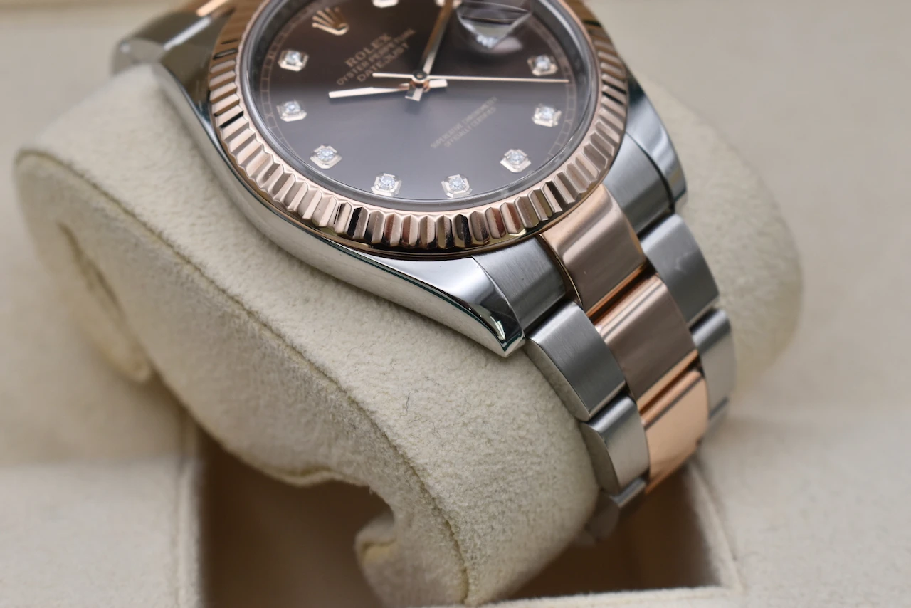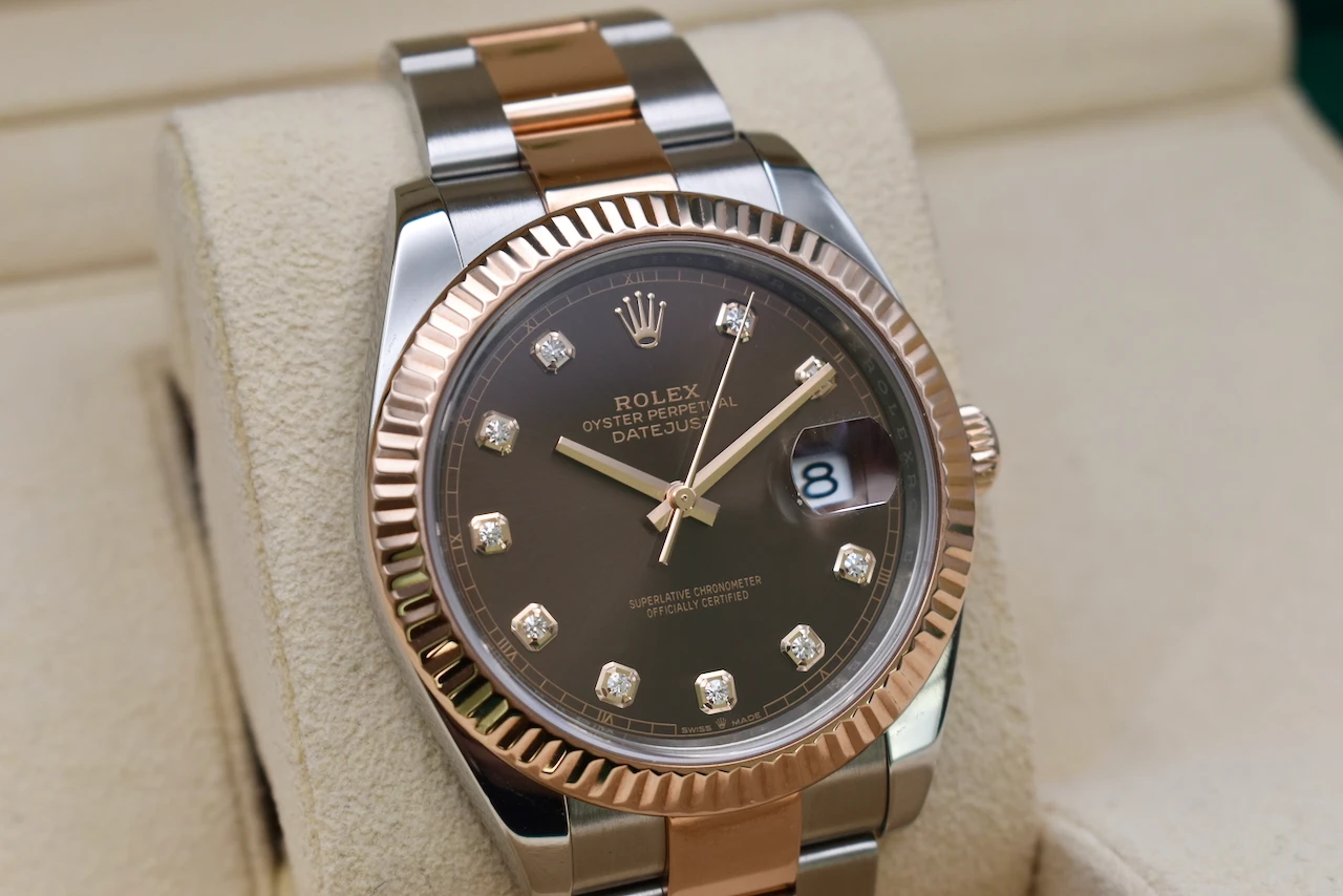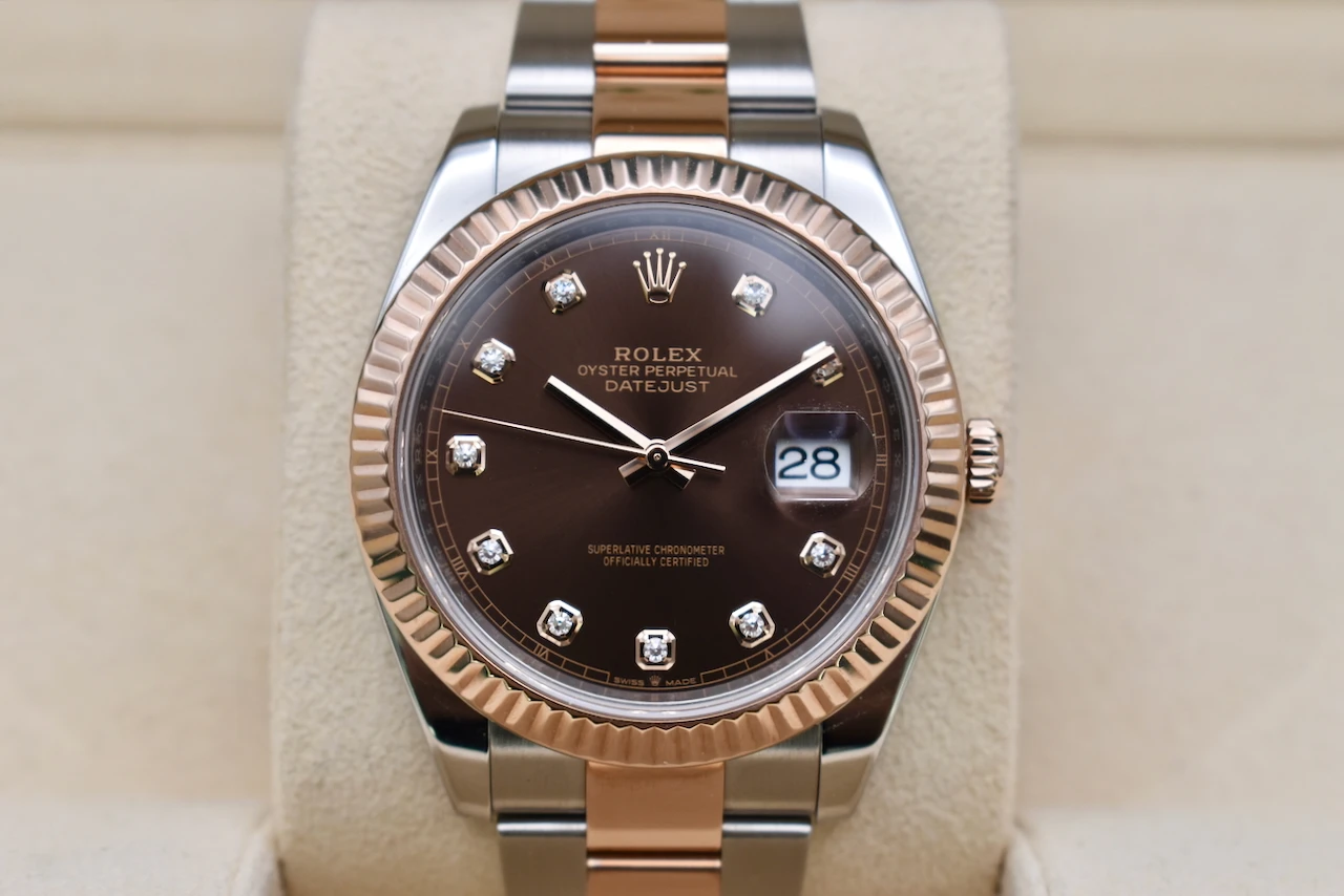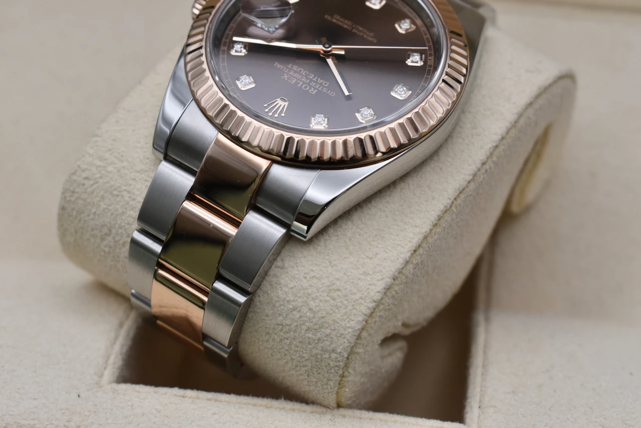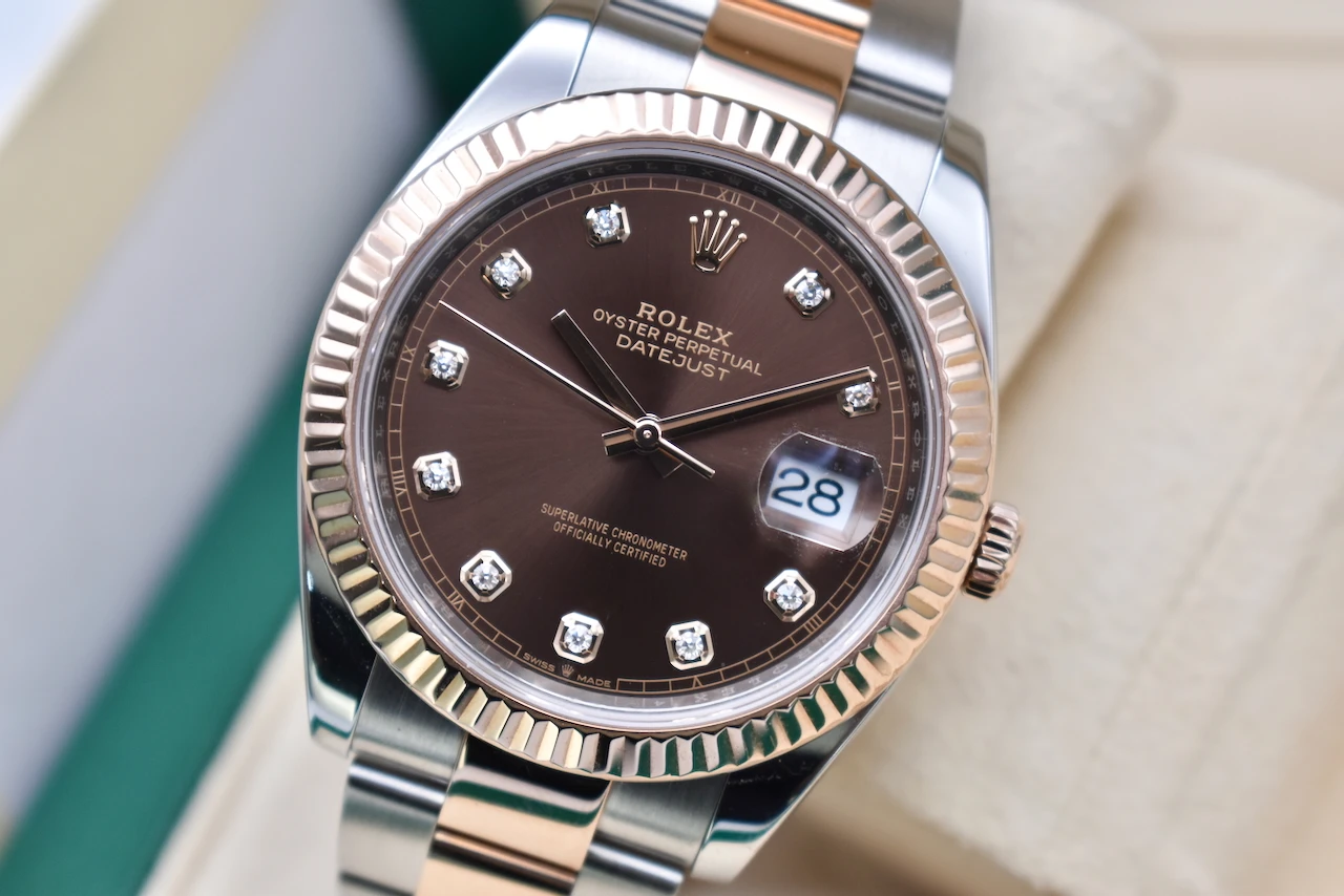 Elevate your collection with this stunning Rolex Datejust 41 126331, a perfect blend of luxury, elegance, and precision. Crafted in stainless steel and Everose gold, this 2021 model is in excellent condition, complete with original box and papers.The standout feature of this timepiece is its rich chocolate diamond dial, exuding sophistication and style, perfectly complemented by the iconic Oyster bracelet for a sleek, versatile look. Whether dressing up for a formal event or adding a touch of refinement to everyday wear, the Datejust 41 delivers unmatched presence on the wrist.