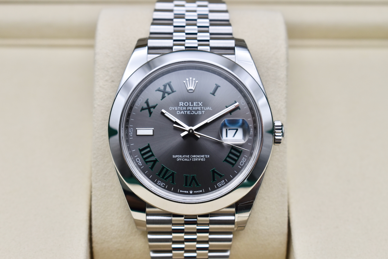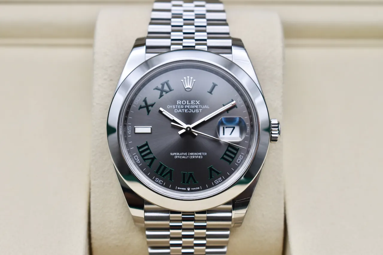 Elevate your collection with the Rolex Datejust 41 Wimbledon 126300, an unworn 2026 model that perfectly blends timeless elegance with modern sophistication. This stunning timepiece features the iconic Wimbledon dial, distinguished by its unique green and black champagne Roman numerals, creating a striking contrast that’s instantly recognizable and highly coveted among Rolex enthusiasts.Crafted in premium stainless steel, the watch boasts a smooth bezel and is fitted on the luxurious Jubilee bracelet, offering unparalleled comfort and classic style. Powered by Rolex’s Calibre 3235 automatic movement, it delivers precise timekeeping and a 70-hour power reserve, ensuring reliability day after day.This unworn Datejust 41 is ideal for those seeking a versatile luxury watch that seamlessly transitions from boardroom to evening events. Available from Tempus Lord, the trusted luxury watch specialist based in Hatton Garden, London, this model comes in brand-new condition, ready to wear and enjoy.