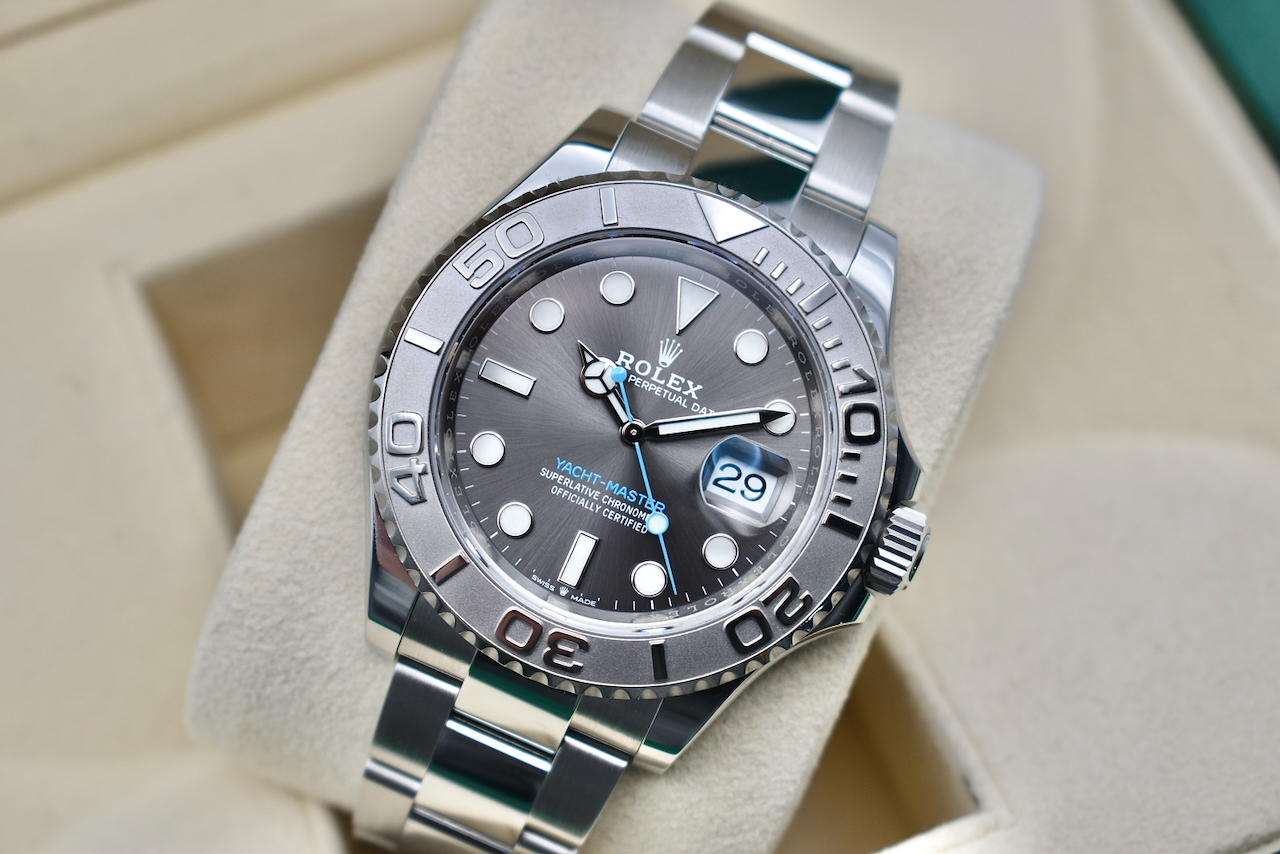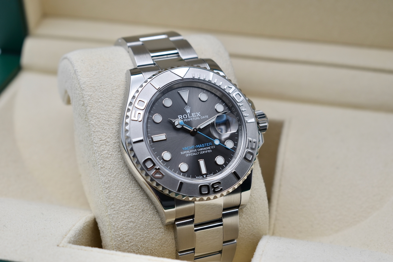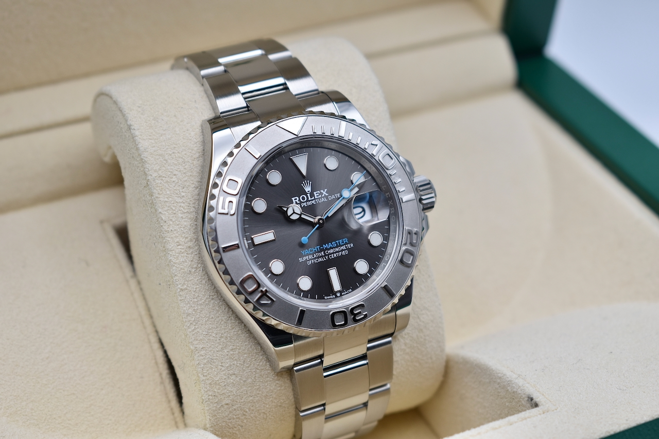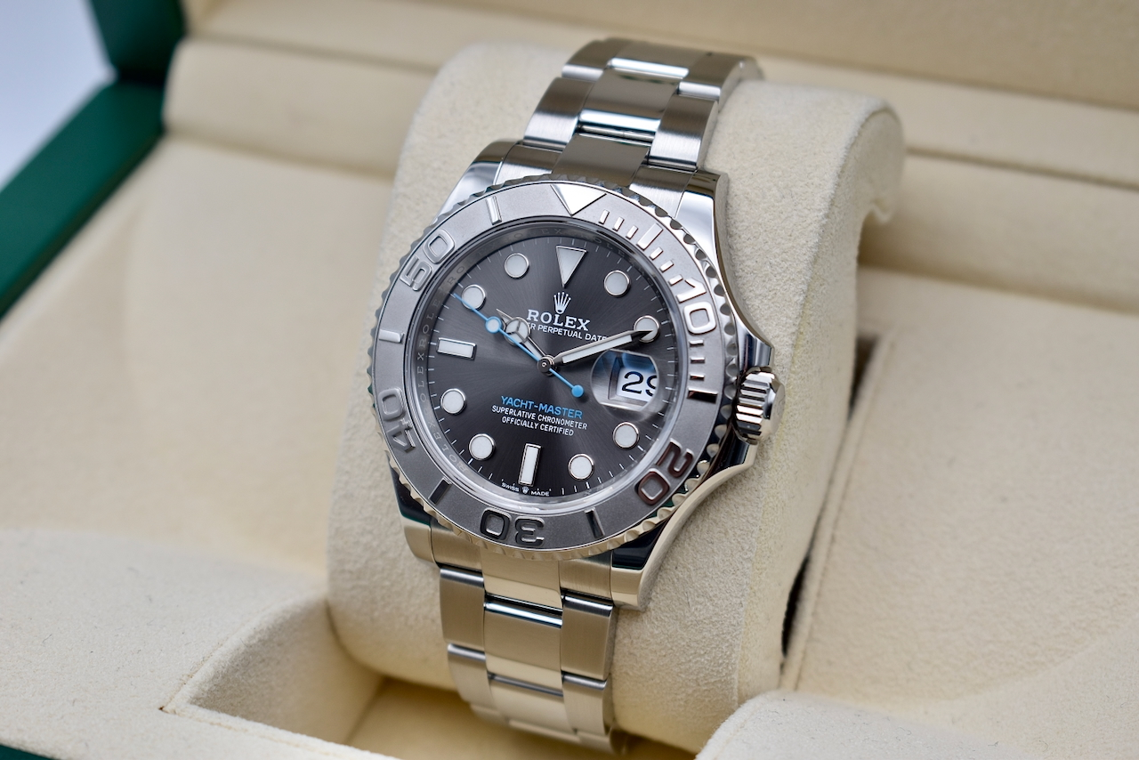 The Rolex Yacht-Master 40 (Ref. 126622) is a perfect blend of luxury, performance, and unmistakable Rolex design. Crafted in stainless steel with the iconic Rolesium finish and a striking platinum bidirectional bezel, this model is built for those who appreciate both elegance and adventure.This stunning 2020 model features the highly desirable rhodium dial, offering a sleek sunburst grey tone with bold luminous hour markers for exceptional clarity in all conditions. The dial is beautifully complemented by the signature Yacht-Master hands and vibrant accents, giving the watch a refined yet sporty presence on the wrist.Powered by Rolex’s advanced automatic movement, the Yacht-Master 40 delivers outstanding reliability, precision, and everyday wearability, secured by the robust Oyster bracelet and Oysterlock clasp.This watch is presented in excellent condition and comes complete with its original Rolex box and papers, making it an ideal choice for collectors, enthusiasts, or anyone looking to invest in a timeless luxury sports watch.Available now from Tempus Lord, a trusted luxury watch specialist based in Hatton Garden, London.