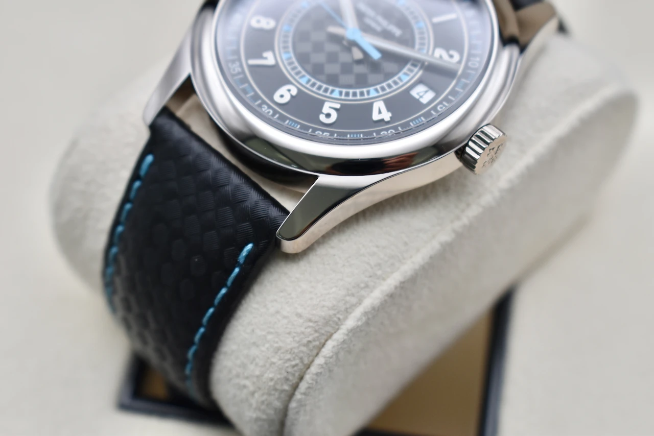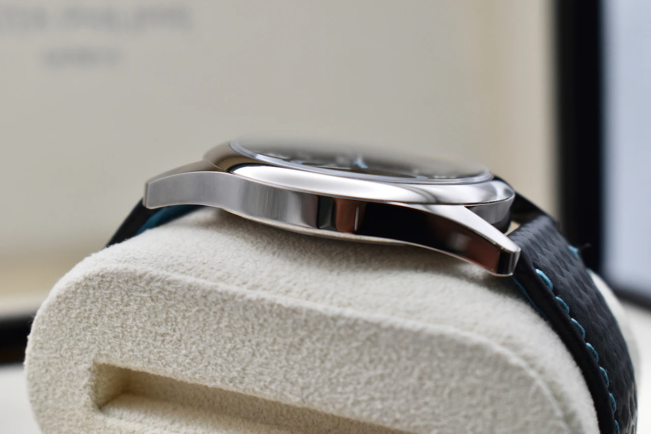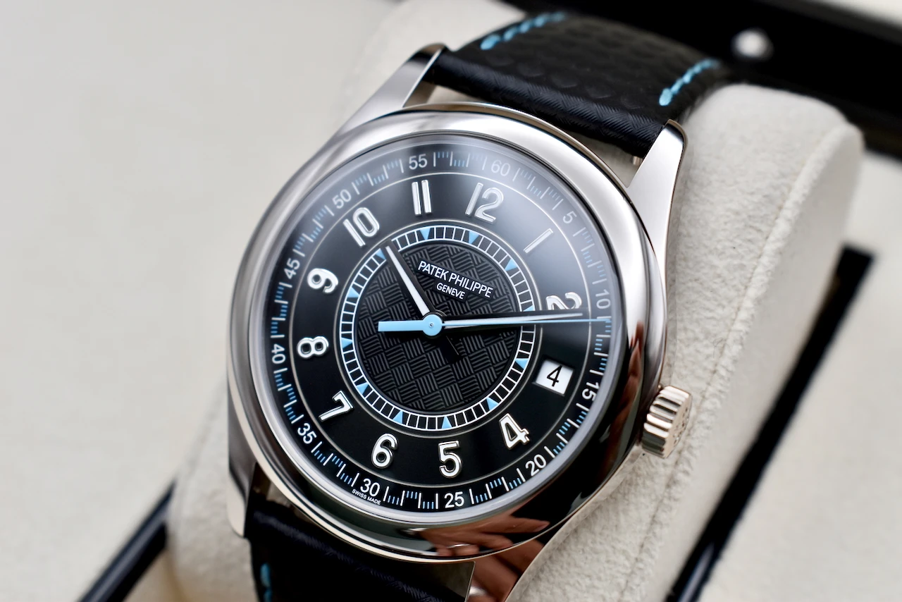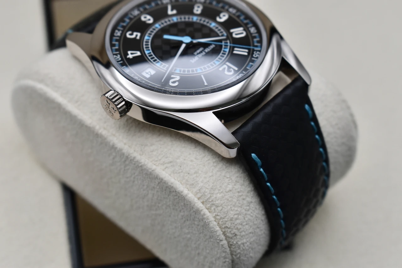 The Patek Philippe Calatrava 6007G-011 is a modern interpretation of one of the world’s most iconic dress watches. Crafted in 18k white gold, this exquisite timepiece showcases Patek Philippe’s dedication to haute horlogerie and timeless design.The striking blue features on an embossed carbon motif dial, applied white-gold Arabic numerals, and luminous hands, giving the watch a contemporary yet refined character. Powered by the self-winding calibre 26-330 S C mechanical movement, the Calatrava 6007G-011 offers precision, elegance, and durability – hallmarks of Patek Philippe’s legacy.
