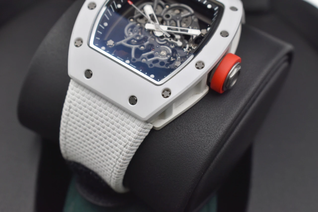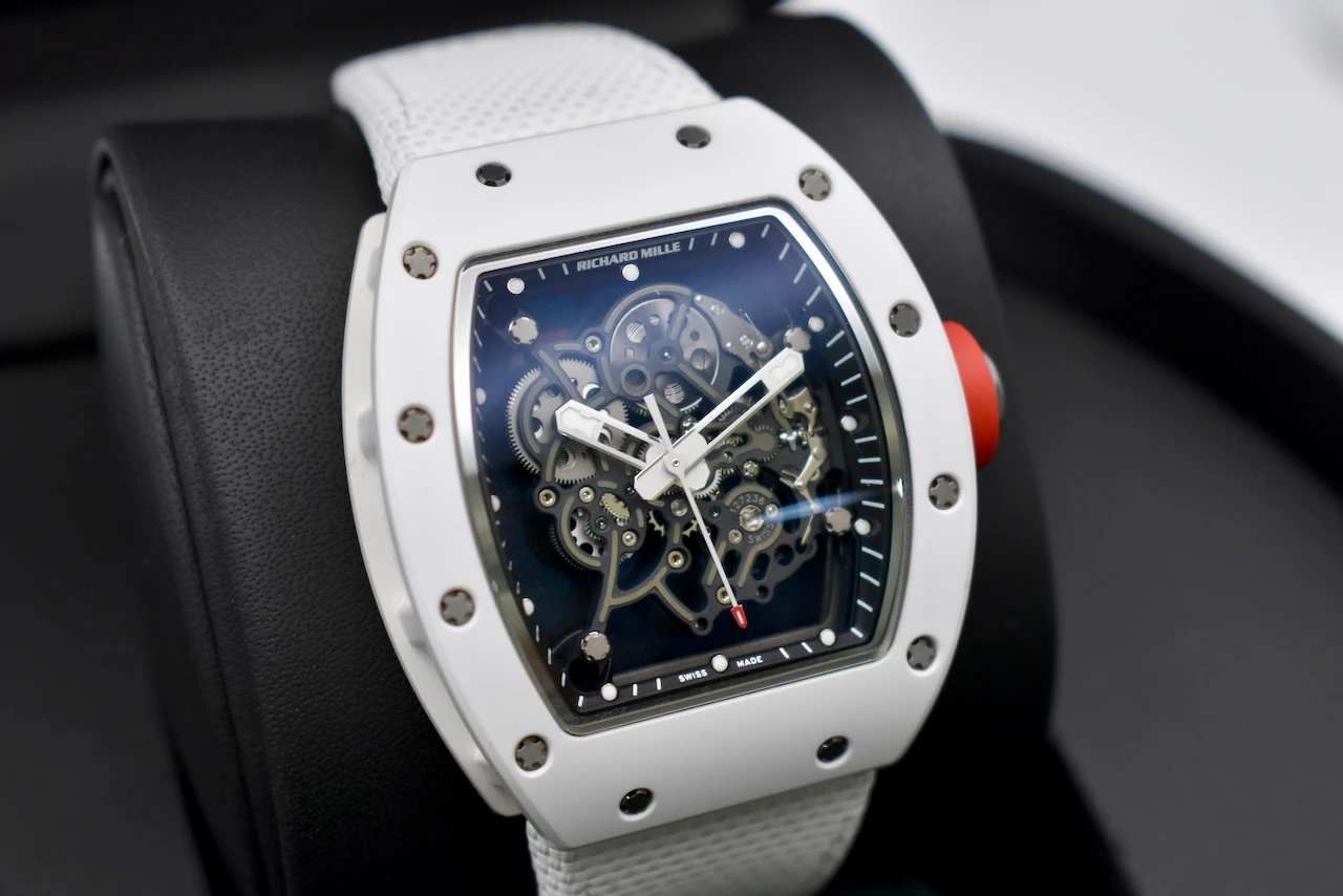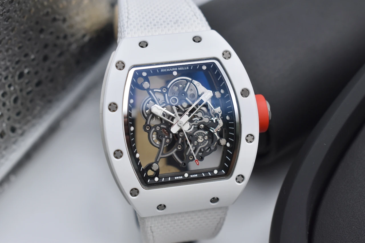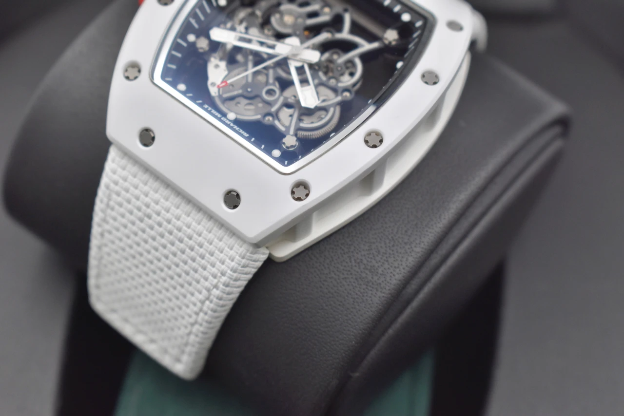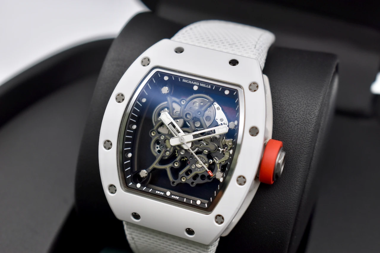 The Richard Mille RM055 Bubba Watson is a masterpiece of contemporary haute horlogerie, designed for performance, innovation, and prestige. Created in collaboration with professional golfer Bubba Watson, this model is the embodiment of Richard Mille’s philosophy of extreme technical precision and avant-garde design.The RM055 features a skeletonised manual-winding movement, crafted with titanium and ceramic for exceptional durability and ultra-light comfort. Its striking white ATZ ceramic case, contrasted with a titanium caseband and transparent sapphire elements, showcases the intricate movement within. With shock resistance built to withstand the impact of professional sports, the RM055 is not just a watch — it is a cutting-edge piece of Swiss engineering.This timepiece exemplifies Richard Mille’s commitment to innovation, exclusivity, and uncompromising quality. As a limited production model, the RM055 Bubba Watson is highly sought after by collectors worldwide, making it both a luxury lifestyle statement and an investment-grade timepiece.