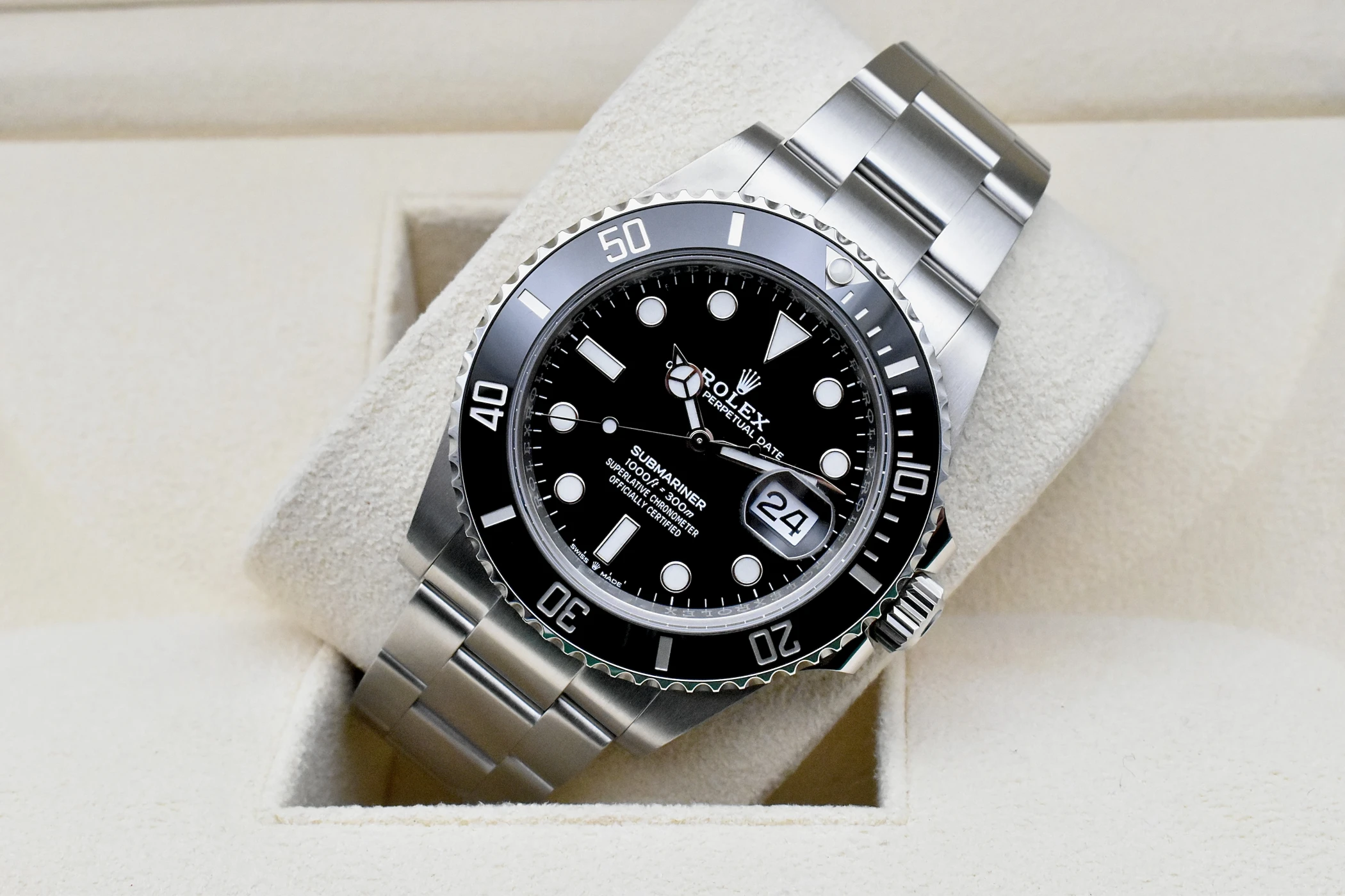 Experience the epitome of diving precision and timeless design with the Rolex Submariner Date 126610LN, available from Tempus Lord, your trusted luxury watch specialist based in Hatton Garden, London’s world-renowned jewellery district.This Rolex Submariner Date 41mm model continues the legacy of one of Rolex’s most iconic sports watches. Crafted from Oystersteel and featuring a black dial with a black Cerachrom ceramic bezel, it combines durability with elegant sophistication. The Calibre 3235 automatic movement ensures superior performance, offering precision, reliability, and a 70-hour power reserve.As one of the most sought-after Rolex Submariner watches, the 126610LN embodies everything that defines Swiss excellence — robust waterproof engineering, superior craftsmanship, and a bold aesthetic suited for both professional divers and collectors of fine timepieces.Available in new and unworn condition, the Rolex Submariner Date 126610LN is a must-have for those who value heritage, prestige, and performance.